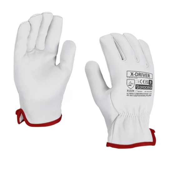 Rękawice robocze wykonane z miękkiej skóry licowej koziej w naturalnym kolorze. W nadgarstku na części grzbietowej ściągnięte gumką, mankiet zakończony lamówką. Zapewniają doskonałą chwytność.