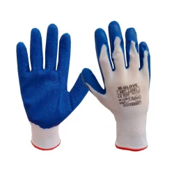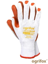 Rękawice ochronne powlekane lateksem o chropowatej strukturze, rozciągliwe i wytrzymałe, elastyczne. Nie kurczą się przy kontakcie z wodą. Zakończone ściągaczem. Dzianina 100% poliester (ścieg 13).