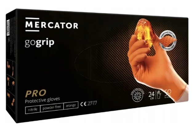 Rękawice nitrylowe gospodarcze i ochronne, bezpudrowe, zapewniają wysoki poziom zabezpieczenia przed niebezpiecznymi substancjami oraz czynnikami zakaźnymi. Diamentowa tekstura gwarantuje doskonałą przyczepność, zwłaszcza w środowisku mokrym i zaolejonym, a jednocześnie umożliwia precyzyjne manipulacje. Uniwersalne – pasują na prawą i lewą rękę – oraz dopuszczone do kontaktu z żywnością. Stanowią środek ochrony indywidualnej kategorii III. Pakowane po 50 sztuk.