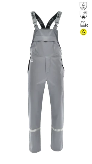 Ogrodniczki ochronne zaprojektowane do pracy w kontakcie z chemikaliami łączą zabezpieczenie antystatyczne z ochroną przed rozpryskami substancji niebezpiecznych, dzięki czemu sprawdzą się w środowiskach o podwyższonym ryzyku. Wykonane z lekkiej, trwałej tkaniny poliestrowo-bawełnianej z dodatkiem włókna węglowego o gramaturze 245 +/- 10 g/m2, zapewniają komfort noszenia, ograniczoną przepuszczalność cieczy oraz zgodność z odpowiednimi normami ochronnymi. Regulowane szelki ułatwiają dopasowanie długości, a konstrukcja ogrodniczek pozwala na stabilne dopasowanie do sylwetki bez ograniczania ruchów.