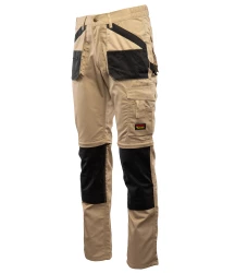 Spodnie robocze z odpinanymi nogawkami, wykonane z trwałej tkaniny (65% poliester, 35% bawełna) o gramaturze 260 g/m². Wyposażone w wzmocnienia w newralgicznych miejscach oraz kolorystyczne wstawki. Szyte podwójnymi i potrójnymi szwami z ryglówkami dla większej wytrzymałości. Posiadają szlufki na pasek oraz gumkę do regulacji obwodu pasa. Wygodne, przestrzenne kieszenie — w tym na telefon, długopisy, miarkę, młotek oraz ergonomiczna kieszeń na nakolanniki z materiału Oxford. Zgodne z normą EN 13688.