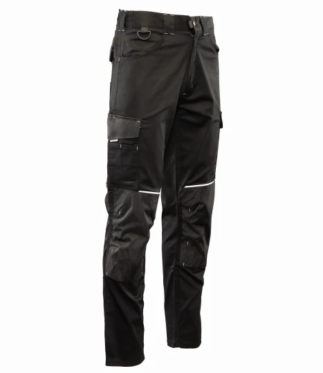 Spodnie robocze o ergonomicznym kroju i nowoczesnym wyglądzie, zaprojektowane z myślą o komforcie i intensywnym użytkowaniu. Wykonane z elastycznej i trwałej tkaniny o składzie 60% bawełna, 37% poliester, 3% spandex, o gramaturze 265 g/m². Dzięki domieszce elastanu materiał zapewnia swobodę ruchów, jednocześnie zachowując wysoką odporność na zużycie.