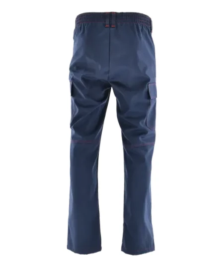 Z tyłu wszyto gumę na całej szerokości, aby lepiej dopasowywać obwód pasa, a funkcjonalne kieszenie boczne – kryte patkami na rzep – pozwalają bezpiecznie przechować potrzebne drobiazgi. Dwuczęściowe tyły nogawek poprawiają układ tkaniny podczas ruchu, a kontrastowe szwy z nici trudnopalnych zwiększają odporność spodni w miejscach szczególnie narażonych na obciążenia. Idealny wybór tam, gdzie jedno rozwiązanie ma zastąpić kilka zestawów ochronnych.