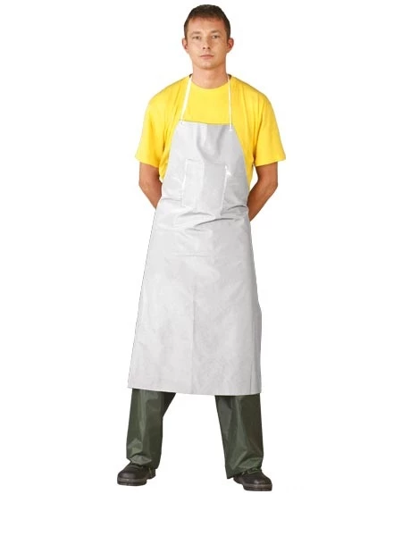 Fartuch przedni wykonany z tworzywa PCV wzmocnionego poliestrem, zapewniającego trwałość i odporność na zabrudzenia. Zakładany na szyję i wiązany z tyłu na paski dla lepszego dopasowania do sylwetki. Wyposażony w praktyczną kieszeń na klatce piersiowej, sprawdza się w pracach wymagających ochrony odzieży przed cieczami i zabrudzeniami.