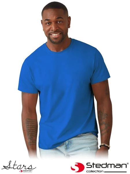 100% wysokogatunkowej bawełny, jednołożyskowej (kolor szary: 85% bawełny/15% wiskozy); gramatura 185 g/m² bez szwów bocznych; taśma wzmacniająca szwy rękawów