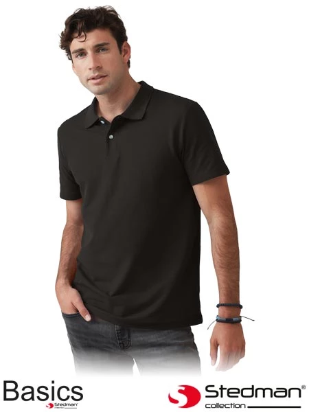 100% bawełny o splocie pique (kolor szary: 85% bawełny/15% wiskozy); gramatura 170 g/m²; szwy boczne; taśma wzmacniająca na karku; rękawki bez ściągaczy; 2 guziki w kolorze rogu