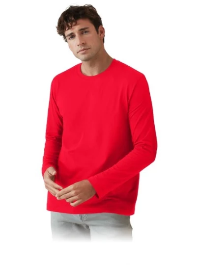T-shirt męski z długim rękawem wykonany w całości z bawełny ring-spun (wersja szara: 85% bawełny, 15% wiskozy) o gramaturze 155 g/m². Model bez szwów bocznych, z rękawami bez ściągaczy oraz wzmocnioną taśmą na karku i ramionach, zapewniającą trwałość i komfort noszenia.