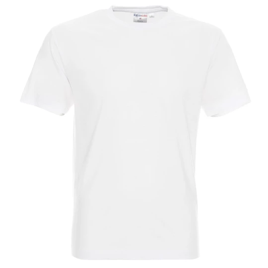 Elastyczny ściągacz; taśma wzmacniająca na ramionach; podwójne szwy, 100% bawełna półczesana; 90% bawełny, 10% wiskozy; gramatura 170 g/m2.