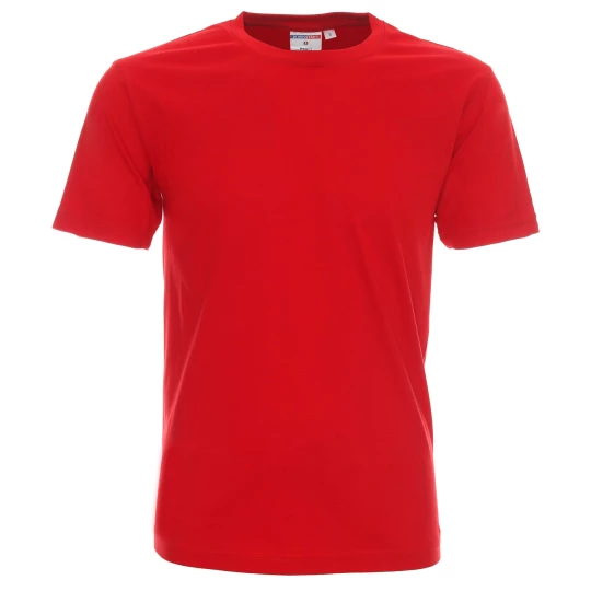 Elastyczny ściągacz; taśma wzmacniająca na ramionach; podwójne szwy, 100% bawełna półczesana; 90% bawełny, 10% wiskozy; gramatura 170 g/m2.