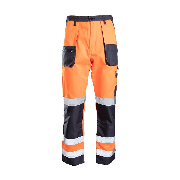 Spodnie robocze wykonane z wytrzymałego materiału z ergonomicznym krojem i wstawkami z OXFORDU w miejscach narażonych na przetarcia. Posiadają liczne kieszenie, a także klin w kroku dla lepszej swobody ruchu oraz podwójne taśmy odblaskowe.