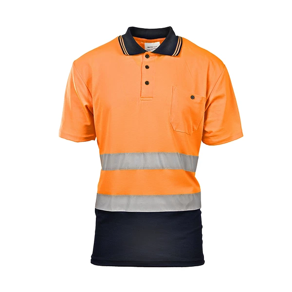 Koszulka polo z krótkim rękawem wykonana z mieszanki 50% bawełny i 50% poliestru, z kołnierzem wykładanym i kolorystycznymi wstawkami. Posiada kieszeń na piersi zapinaną na guzik oraz odblaskowe pasy zwiększające widoczność.