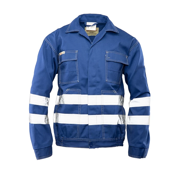 Bluza robocza zapinana na guziki, wykonana z trwałego materiału odpornego na pranie. Ma podwójne szwy, ryglówki i zaszewki na plecach. Wyposażona w liczne kieszenie, mankiety na guziki i taśmy odblaskowe zwiększające widoczność.