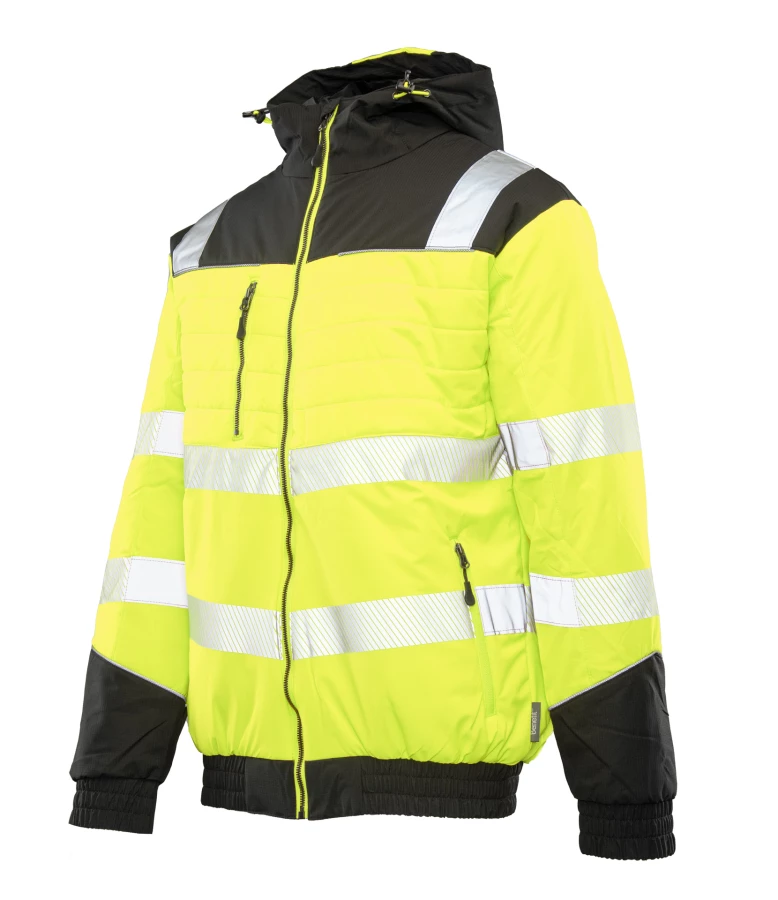Krótka kurtka wykonana z poliestru rip-stop z membraną TPU, z ociepliną poliestrową 200 g/m² i podszewką 120 g/m², zapewnia ochronę przed chłodem i wiatrem. Zapinana na zamek kostkowy kryty listwą, posiada kieszeń na klatce piersiowej, dwie boczne kieszenie zewnętrzne oraz wewnętrzną na dokumenty. Anatomicznie profilowany, regulowany kaptur jest ocieplany i nieodpinany, a mankiety wykończone ściągaczem. Dodatkowo kurtka wyposażona jest w regulację w pasie i elementy odblaskowe w postaci wstawek oraz poziomych pasów termotransferowalnych, zwiększających widoczność użytkownika.