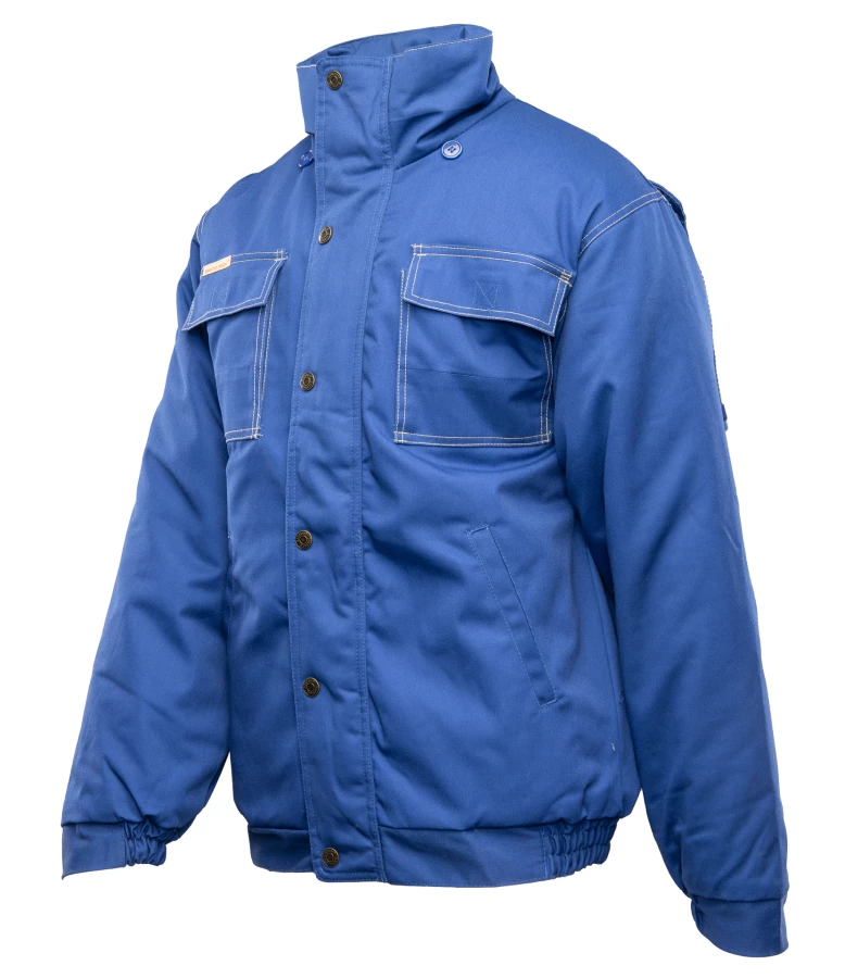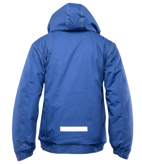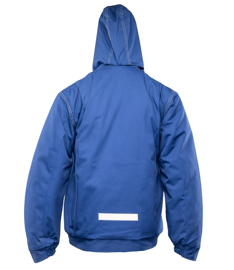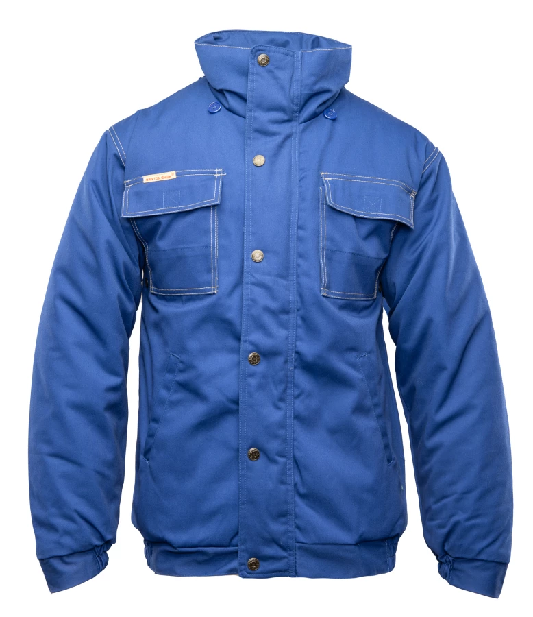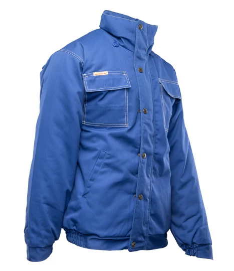 Kurtka robocza zapinana na zamek kryty listwą, wykonana z mieszanki 65% poliestru i 35% bawełny o gramaturze 290 g/m². Wysokiej jakości materiał zapewnia stabilność kolorów i rozmiarów nawet po wielokrotnym praniu. Ocieplenie stanowi poliester 200 g/m², a całość wzmocniona jest podwójnymi szwami szytymi mocną nicią. Bluza posiada dwie kieszenie boczne, kieszeń na telefon oraz dwie górne kieszenie zapinane na rzepy, w tym jedną krytą listwą. Rękawy zakończone są ściągaczem z regulacją na rzepy, a dół wyposażony w gumkę ściągającą chroniącą przed wiatrem. Dodatkowo posiada odpinany, regulowany i ocieplany kaptur oraz elementy odblaskowe na plecach zwiększające widoczność.