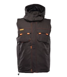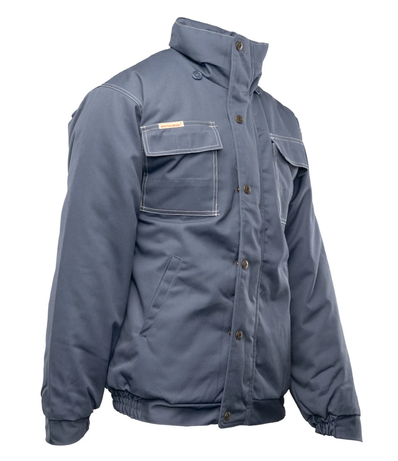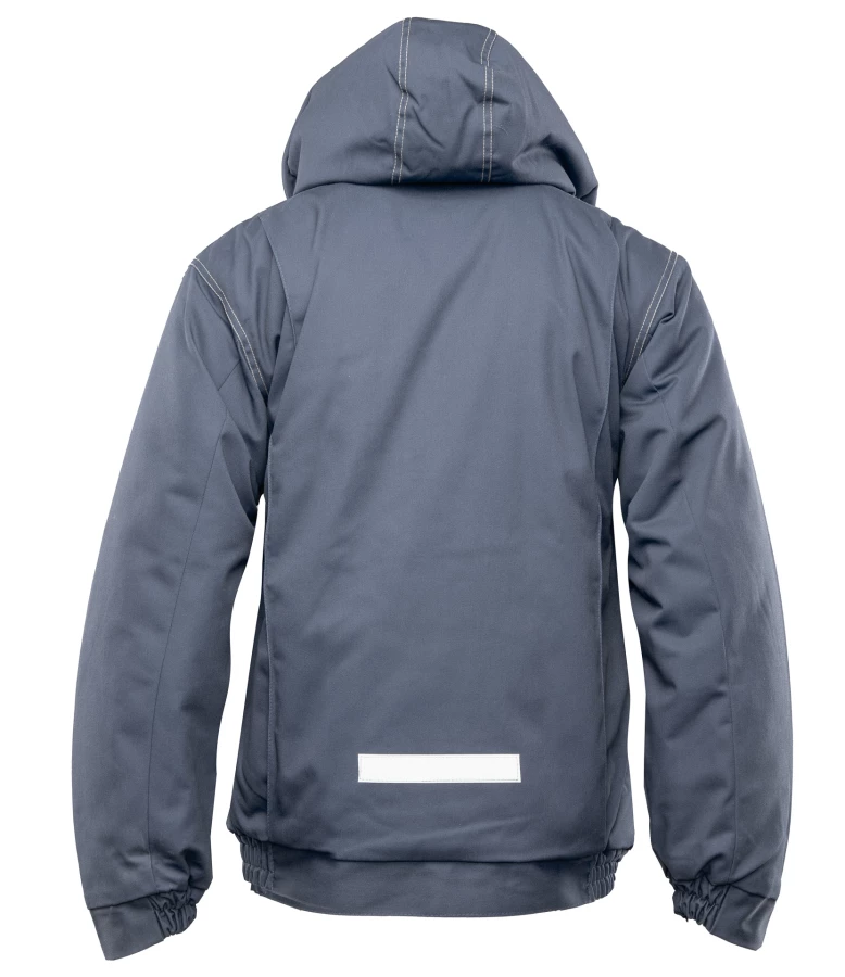 Kurtka robocza zapinana na zamek kryty listwą, wykonana z mieszanki 65% poliestru i 35% bawełny o gramaturze 290 g/m². Wysokiej jakości materiał zapewnia stabilność kolorów i rozmiarów nawet po wielokrotnym praniu. Ocieplenie stanowi poliester 200 g/m², a całość wzmocniona jest podwójnymi szwami szytymi mocną nicią. Bluza posiada dwie kieszenie boczne, kieszeń na telefon oraz dwie górne kieszenie zapinane na rzepy, w tym jedną krytą listwą. Rękawy zakończone są ściągaczem z regulacją na rzepy, a dół wyposażony w gumkę ściągającą chroniącą przed wiatrem. Dodatkowo posiada odpinany, regulowany i ocieplany kaptur oraz elementy odblaskowe na plecach zwiększające widoczność.