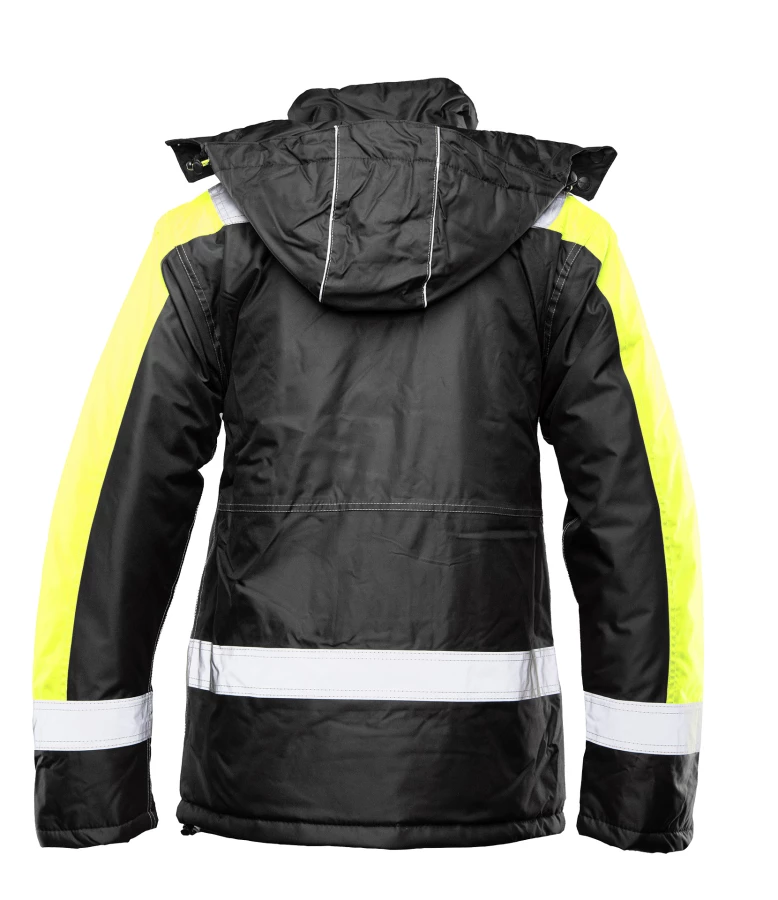 Kurtka parka wykonana w całości z poliestru OXFORD/PCV z przepikowaną ociepliną poliestrową (200 g/m²) i podszewką z nylonu zapewnia ciepło i komfort w chłodne dni. Zapinana na zamek kryty listwą na napy, posiada praktyczne kieszenie boczne i na klatce piersiowej, a kołnierz oraz odpinany, regulowany kaptur są dodatkowo ocieplone dla większej ochrony. Rękawy wykończone prostym mankietem ze wszytym ściągaczem, a regulowany dół kurtki umożliwia idealne dopasowanie. Dodatkowe pasy i lamówki odblaskowe zwiększają widoczność i bezpieczeństwo użytkownika.