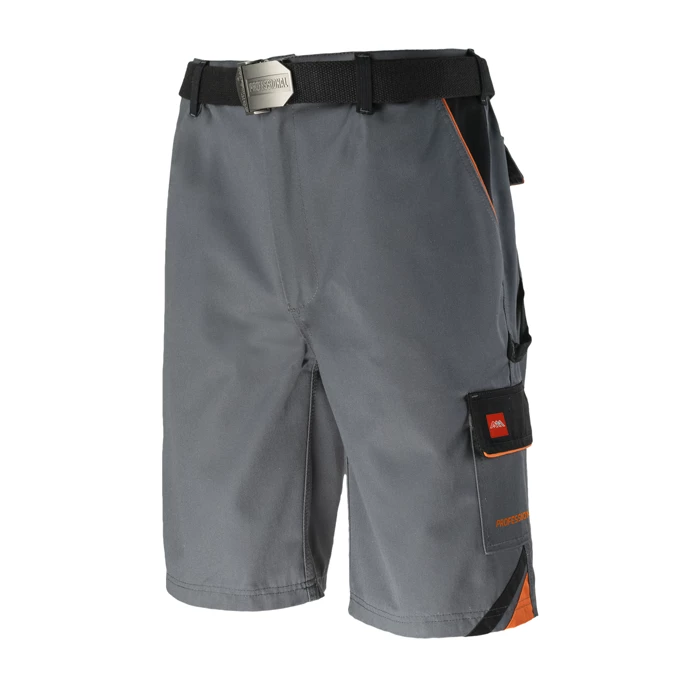 Krótkie spodenki robocze o nowoczesnym, eleganckim wzornictwie, zapewniające wysoki komfort użytkowania. Wykonane z trwałej tkaniny (65% poliester, 35% bawełna) o gramaturze 320 g/m² i zwartym splocie, cechują się wyjątkową odpornością na zużycie. Wyposażone w sześć funkcjonalnych kieszeni, w tym trzy zamykane na rzepy. Wzmocnienia w postaci potrójnych szwów i ryglówek zapewniają trwałość w miejscach najbardziej narażonych na rozerwanie. Tkanina o niskiej kurczliwości i zachowująca stabilność koloru nawet po wielokrotnym praniu.