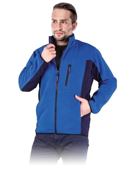 Polar roboczy. 100% poliester. Gramatura 290 g/m². trzy kieszenie po zewnętrznej stronie: dwie po bokach i jedna na górze zasuwana. Po wewnętrznej stronie dwie dodatkowe kieszenie. Rękawy wykończone elastyczną lamówką, która delikatnie ściąga.