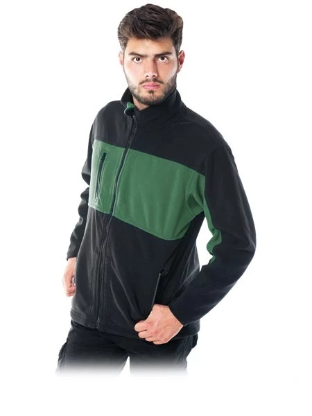 Bluza ochronna męska wykonana z dzianiny polarowej (100% poliester) o gramaturze 280 g/m², zapewniającej komfort i ciepło podczas użytkowania. Wyposażona w trzy kieszenie zapinane na suwak – dwie dolne oraz jedną na klatce piersiowej – oraz kołnierz w formie stójki. Rękawy wykończone elastyczną lamówką zwiększają wygodę noszenia, a fason REGULAR gwarantuje swobodę ruchów. Produkt spełnia normy OEKO-TEX STANDARD 100, EN ISO 12947-2 oraz EN ISO 13688, co potwierdza jego jakość i bezpieczeństwo użytkowania.