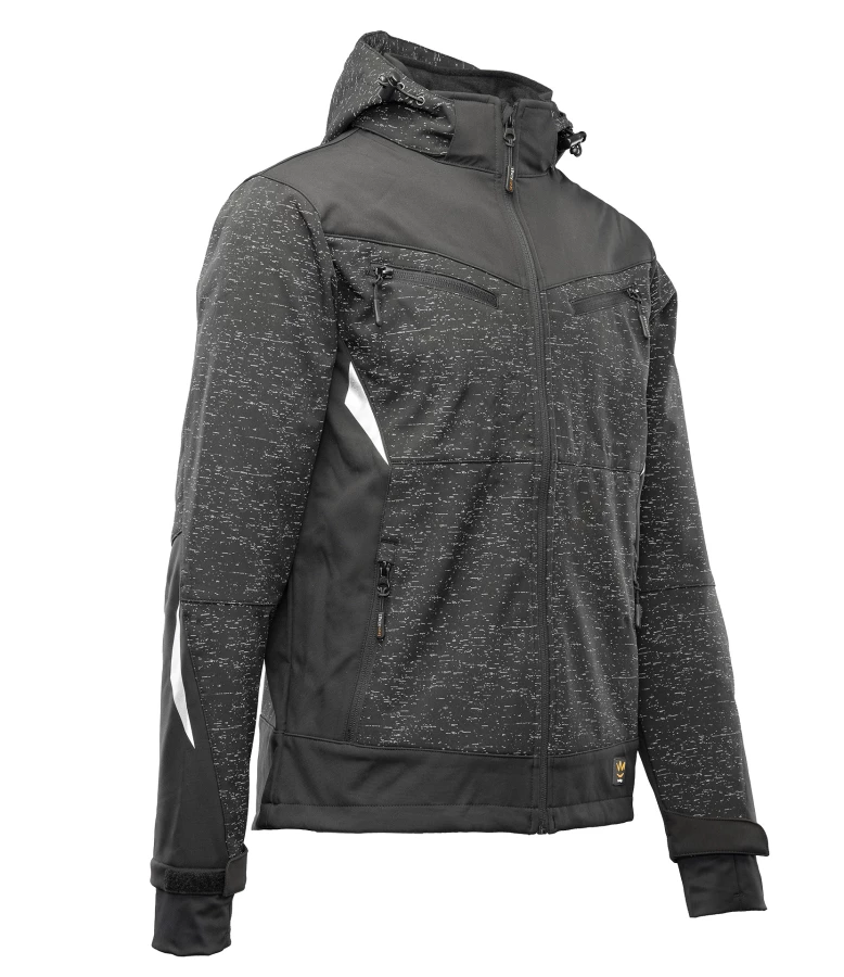 Softshellowa kurtka robocza wykonana z elastycznego i trwałego materiału o gramaturze 310 g/m² z membraną zapewniającą ochronę przed wiatrem i wodą (wodoodporność do 5000 mm) oraz dobrą oddychalność na poziomie 200 g/m²/24h. Uszyta z tkaniny zawierającej poliester z dodatkiem elastanu, gwarantuje komfort i swobodę ruchów.