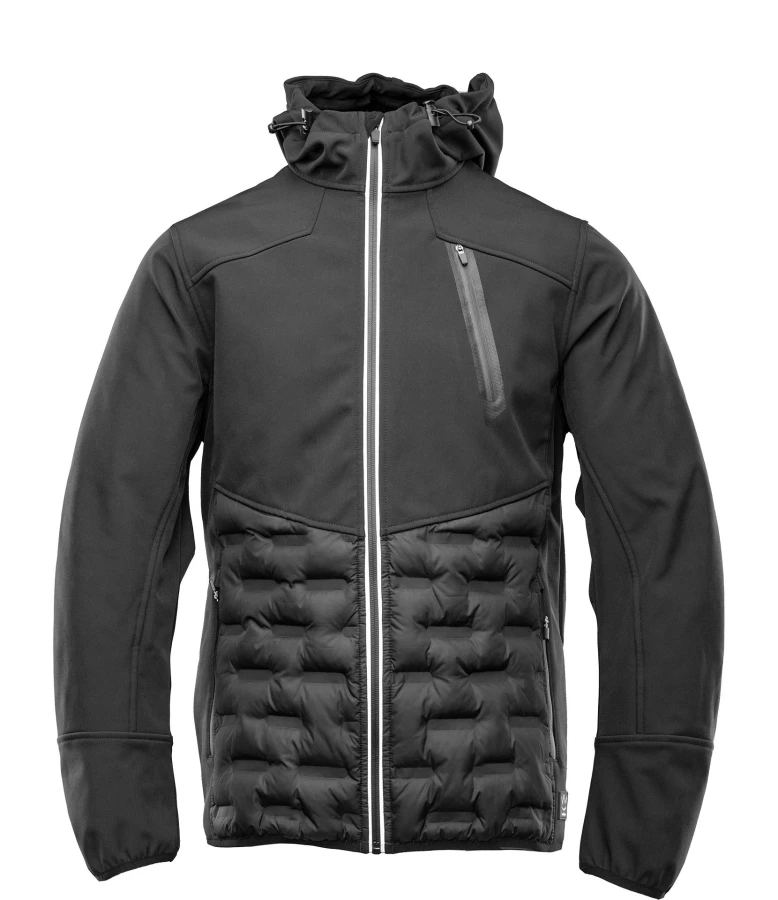 Softshellowa kurtka robocza wykonana z wysokiej jakości materiału składającego się z poliestru oraz elastanu, z ociepliną zapewniającą komfort cieplny. Posiada zamek błyskawiczny, regulowany, nieodpinany kaptur oraz mankiety przy rękawach ściągane za pomocą gumki.