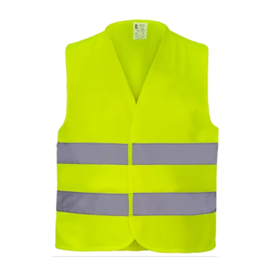 Kamizelka ostrzegawcza wykonana z wysokiej jakości poliestrowej dzianiny z dwoma pasami odblaskowymi, zapinana z przodu na rzep. Spełnia wymagania normy EN ISO 20471:2013 klasa 2 (poza rozmiarami S i M dla tych spełnia normę kat. 1 kategoria 1 EN ISO 13688: 2013)
