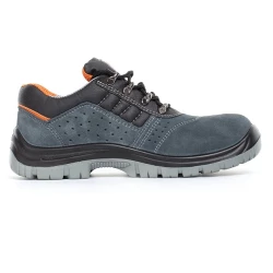 Półbuty bezpieczne z metalowym podnoskiem ochronnym. Cholewka obuwia wykonana jest ze skóry welurowej. Perforacja cholewki po bokach zapewniająca oddychanie Podeszwa antypoślizgowa, antyelektrostatyczna.
