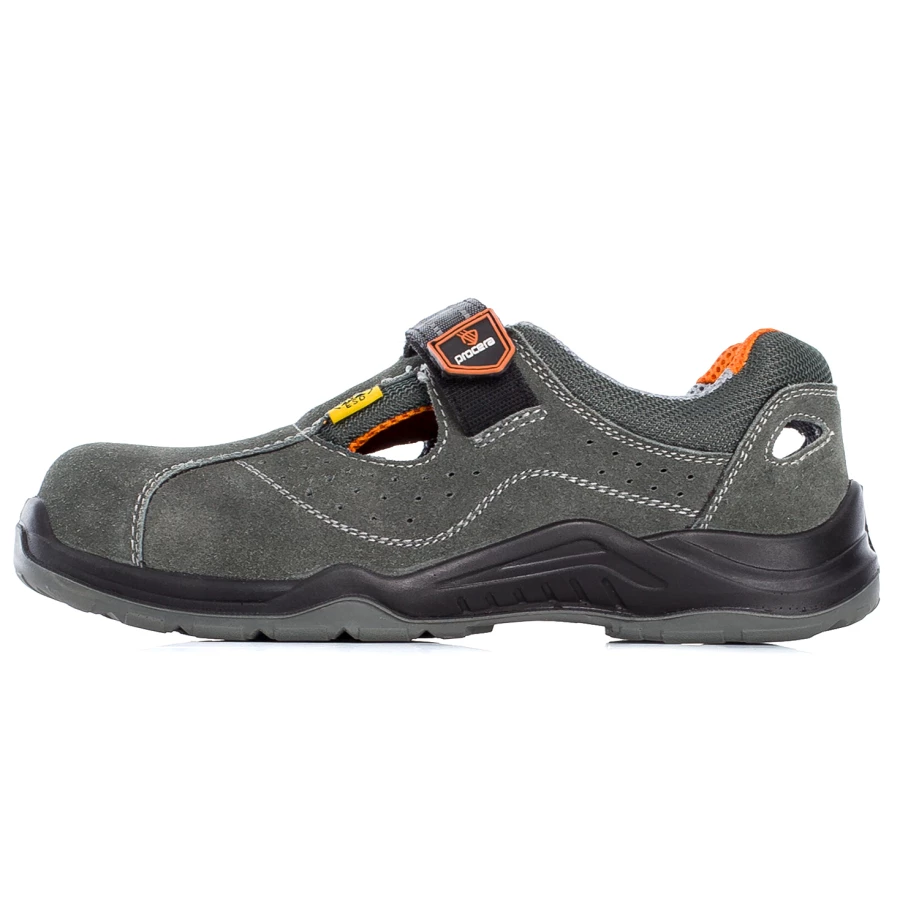 Sandały bezpieczne z kompozytowym podnoskiem ochronnym o właściwościach antyelektrostatycznych. Cholewka obuwia wykonana jest ze skóry welurowej. Wyściółka z oddychającego materiału 3D Mesh.