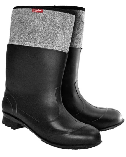 Buty filcowe wykonane z wysokiej jakości PCV z wkładem filcowym oraz wkładką zapewniającą komfort cieplny. Cholewa z włókniny z dodatkiem biokomponentu ograniczającego rozciąganie materiału gwarantuje dobrą izolację termiczną. Obuwie chroni przed zimnem, wilgocią i przesiąkaniem wody. Podeszwa urzeźbiona, antypoślizgowa, odporna na niskie temperatury. Buty dobrze dopasowują się do nogi, nie zsuwają się podczas pracy, jednocześnie umożliwiając łatwe zakładanie. Przeznaczone do prac terenowych w trudnych warunkach atmosferycznych.