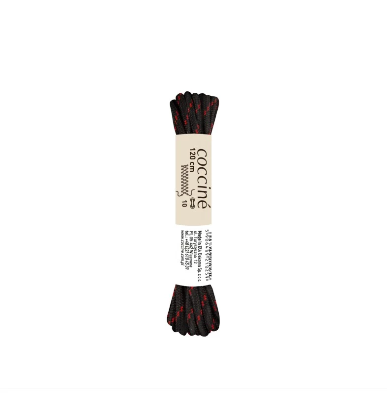 Solidne sznurowadła trekkingowe w kolorze czarno-czerwonym o długości 120 cm to niezawodny wybór do butów turystycznych i outdoorowych. Wykonane z trwałych, plecionych włókien, zapewniają stabilne wiązanie i pewne trzymanie stopy nawet podczas wymagających wędrówek. Ich dynamiczne połączenie kolorów dodaje butom charakteru i sportowego wyglądu.