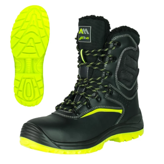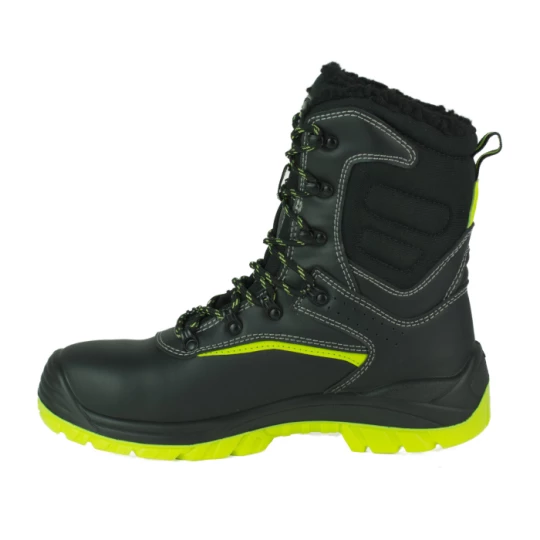 Wysoka cholewka (ok. 19 cm) zapewnia stabilność i dopasowanie, a elementy fluorescencyjne poprawiają widoczność użytkownika. Miękki język i kołnierz, amortyzujące wstawki oraz ocieplona, wymienna wkładka zwiększają komfort noszenia. Podeszwa PU/PU formowana wtryskowo jest antypoślizgowa (SR), odporna na oleje i paliwa (FO) oraz wyposażona w absorber energii w pięcie.