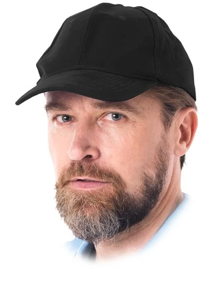 Czapka z daszkiem wykonana w 100% z bawełny, z usztywnianym przodem i daszkiem, który zapewnia trwały kształt. Posiada 6 paneli, regulację obwodu (54–62 cm) na rzep oraz spełnia normy EN ISO 12947-2 i EN ISO 13688. Waga czapki to ok. 260 g.