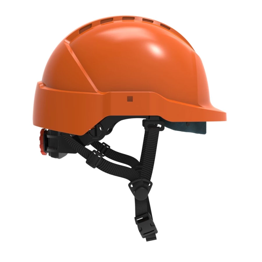Wytrzymały kask ochronny zapewniający niezawodną ochronę głowy w wymagających warunkach pracy. Skorupa wykonana jest z tworzywa ABS w kolorze żółtym, odporna na uderzenia i odkształcenia boczne, testowana w bardzo niskiej temperaturze do -30℃. Kask posiada elektroizolacyjne właściwości (440 Vac) i spełnia wymagania klasy ochronności III. Wyposażony jest w więźbę obrotową z regulacją pokrętłem w zakresie 51–63 cm, zapewniając stabilne i komfortowe dopasowanie podczas użytkowania.