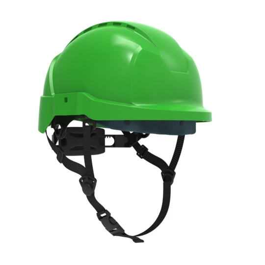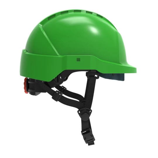 Wytrzymały kask ochronny zapewniający niezawodną ochronę głowy w wymagających warunkach pracy. Skorupa wykonana jest z tworzywa ABS w kolorze żółtym, odporna na uderzenia i odkształcenia boczne, testowana w bardzo niskiej temperaturze do -30℃. Kask posiada elektroizolacyjne właściwości (440 Vac) i spełnia wymagania klasy ochronności III. Wyposażony jest w więźbę obrotową z regulacją pokrętłem w zakresie 51–63 cm, zapewniając stabilne i komfortowe dopasowanie podczas użytkowania.