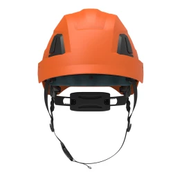 Wytrzymały kask ochronny, zapewniający niezawodną ochronę głowy w trudnych warunkach pracy. Skorupa wykonana jest z tworzywa ABS, odporna na uderzenia i odpryski stopionego metalu (MM), testowana w bardzo niskiej temperaturze do -30℃. Kask posiada właściwości elektroizolacyjne oraz mocowanie czołówki, umożliwiające montaż dodatkowego oświetlenia. Wyposażony jest w więźbę obrotową z regulacją pokrętłem w zakresie 51–63 cm, co zapewnia stabilne i komfortowe dopasowanie podczas użytkowania.