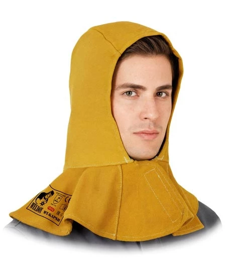 Kaptur spawalniczy wykonany ze skóry bydlęcej dwoinowej, z siateczkową podszewką (70% bawełna, 30% poliester), szyty trudnopalnymi nićmi z kevlaru. Zapinany na rzep, lekki i wygodny, skutecznie chroni głowę oraz szyję podczas prac spawalniczych i ślusarskich.