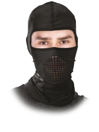 Termoaktywna kominiarka wykonana z elastycznej dzianiny (60% nylon, 32% polipropylen, 8% elastan) o gramaturze 210 g/m², dopasowująca się do kształtu głowy. Pojedynczy otwór nie ogranicza pola widzenia, a strefa wentylacji na wysokości ust zapewnia swobodny przepływ powietrza. Przedłużony kołnierz chroni podbródek, szyję i dekolt przed wiatrem i chłodem. Polecana do pracy oraz do sportów zimowych i motocyklowych.