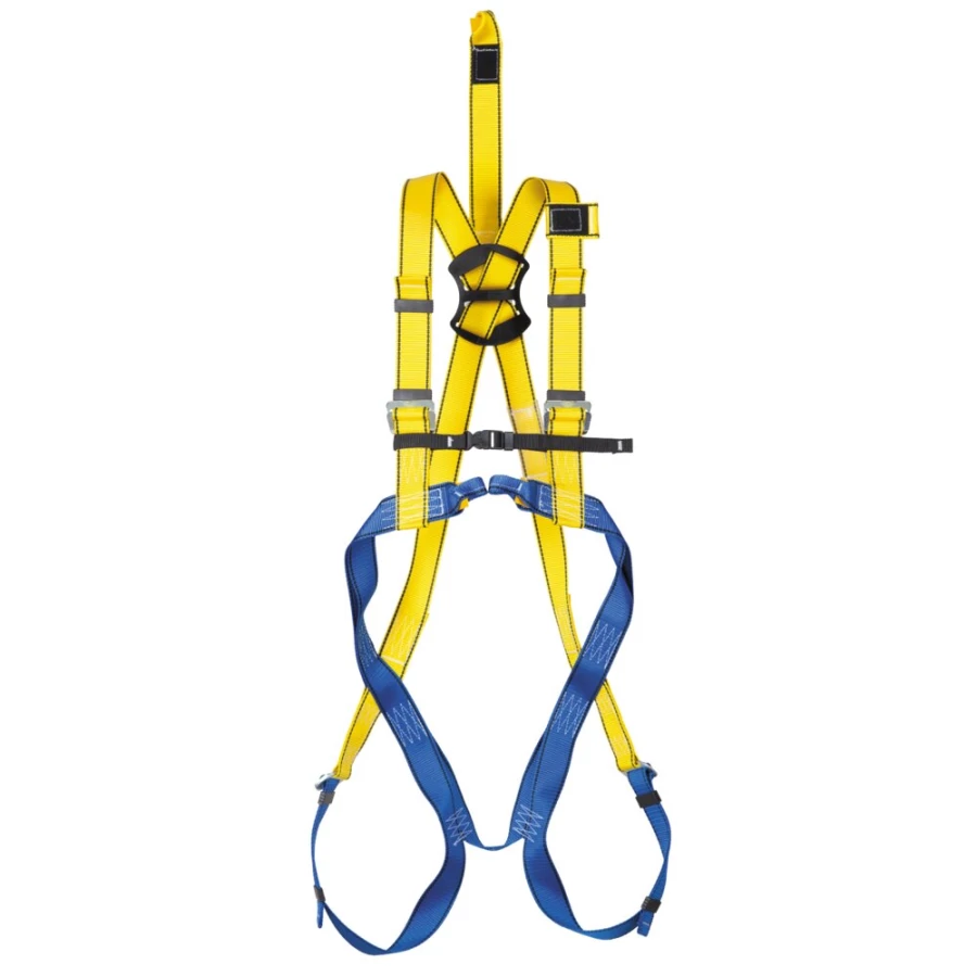 Szelki bezpieczeństwa w rozmiarze M–XL wykonane są z wytrzymałych taśm poliestrowych o szerokości 45 mm, zszytych poliestrową nicią. Wyposażone zostały w stalowe, ocynkowane klamry regulacyjne i zaczepowe, a także klamrę piersiową z tworzywa sztucznego. Posiadają przedni i tylny punkt zaczepowy, co zapewnia szerokie możliwości użytkowe.